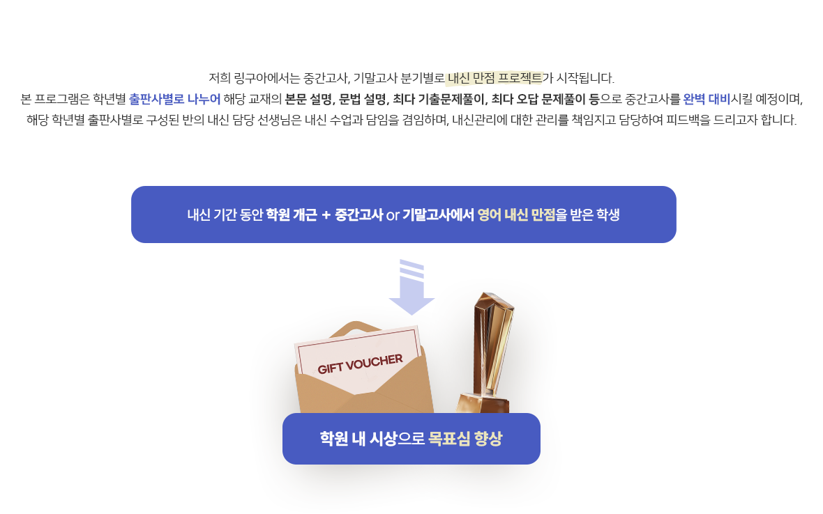 중간/기말고사 영어내신 우수자 대상 문화상품권 지급 !