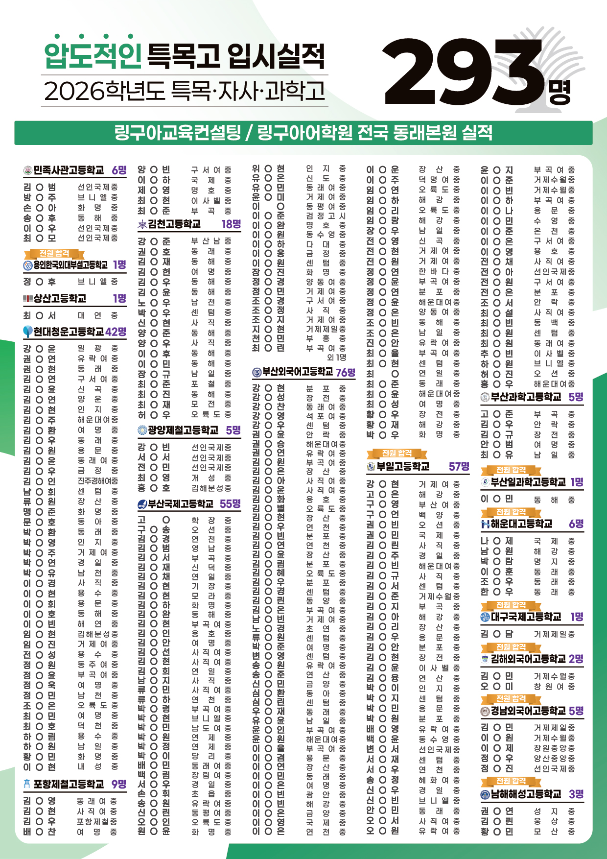 [2026] 2026학년도 특목·자사·과학고 입시실적